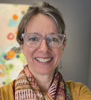 “My art encompasses multiple disciplines but has two distinct paths. I have been a painter most of my career, mainly inspired by nature, specifically birds. I am known for vivid colors and a whimsical painterly style full of life and movement that is uniquely my own. My paintings are collected worldwide, and my most popular images have appeared on TV, in hotels and hospitals, and on various household items. I am also an installation artist fascinated by printmaking and traditional fiber arts crafts—their history and the community they build. I create anything from small paper and fiber collage pieces using vintage materials to large fiber arts installations incorporating video and performance art. In the process of creation, I encourage community engagement and enjoy incorporating donated pieces while preserving their unique history. Despite their distinct differences, both sides of my art career inform the other and energize me as I look forward to making art and creating thoughtful spaces in the decades ahead.”