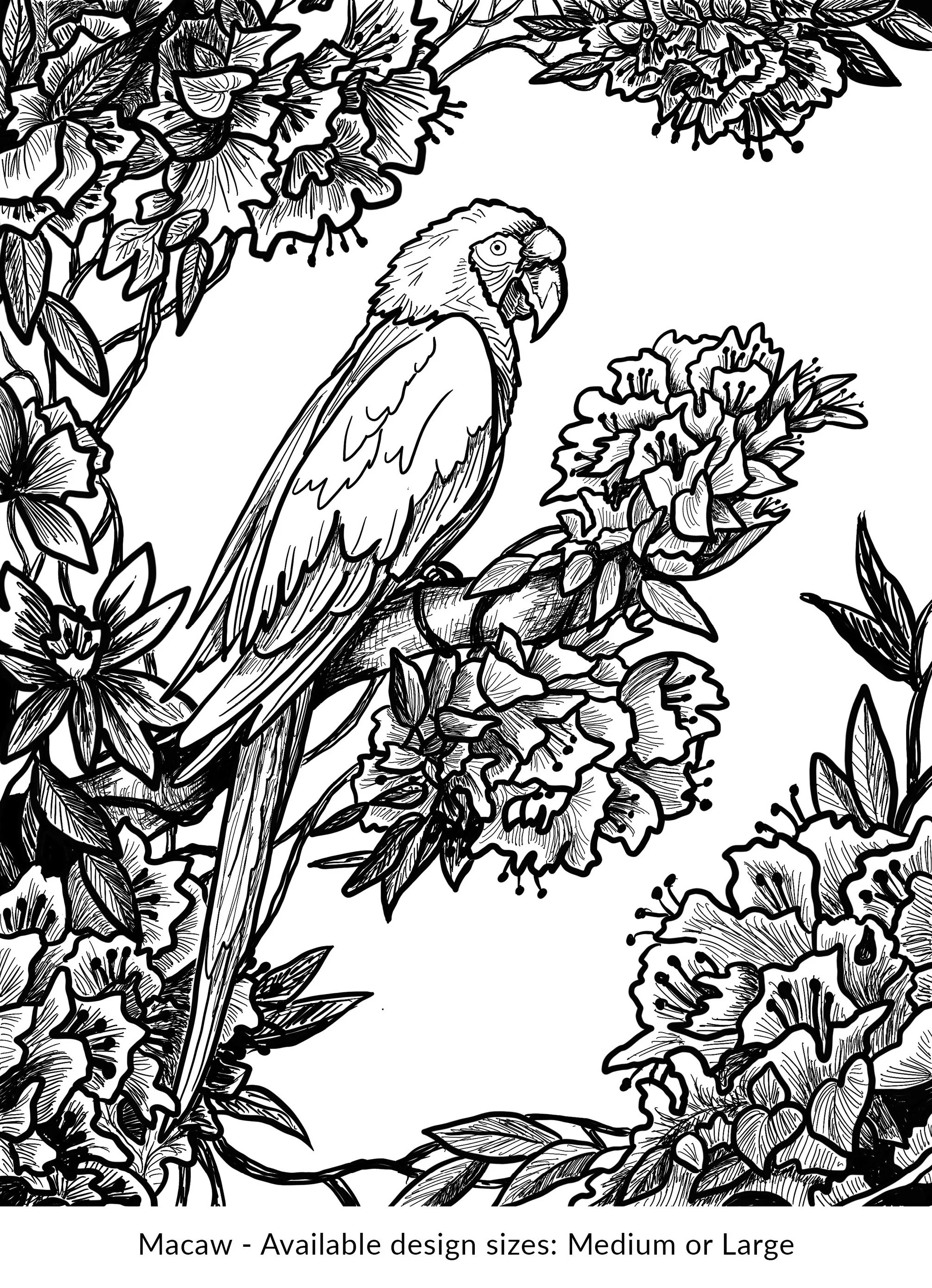 Design Choices*: You can choose from existing designs or provide your own bird and foliage selections at checkout (a custom design fee applies). The number of choices is limited by the size of the painting.